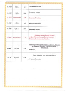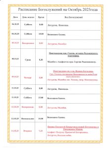 Расписание Богослужений на Октябрь 2025